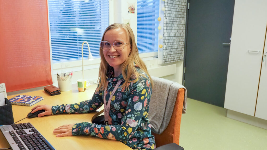 Terveydenhoitaja Kirsi Rousi pääsee työssään kohtaamaan kolmen jämsäläiskoulun lapset ja nuoret. Työn monipuolisuus ja koulu työympäristönä hurmasivat heti.