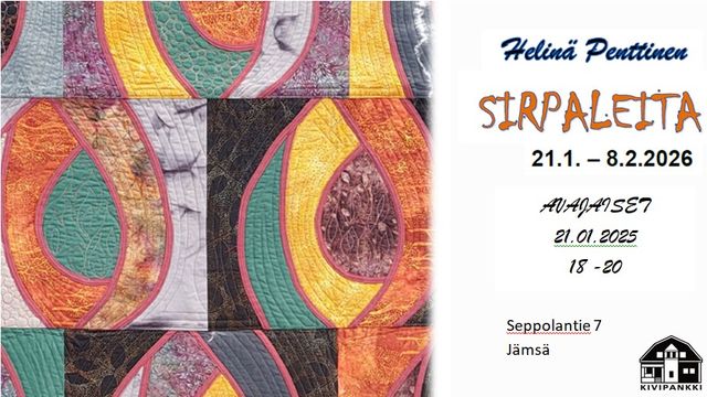 Helinä Penttisen taidenäyttely Sirpaleita koostuu perinteisistä tilkkutöistä, moderneista tekstiilitaiteeksi luokiteltavista töistä sekä akvarelleista.Näyttelyn nimi Sirpaleita kertoo siitä, että tekstiilityöt koostuvat paloista...