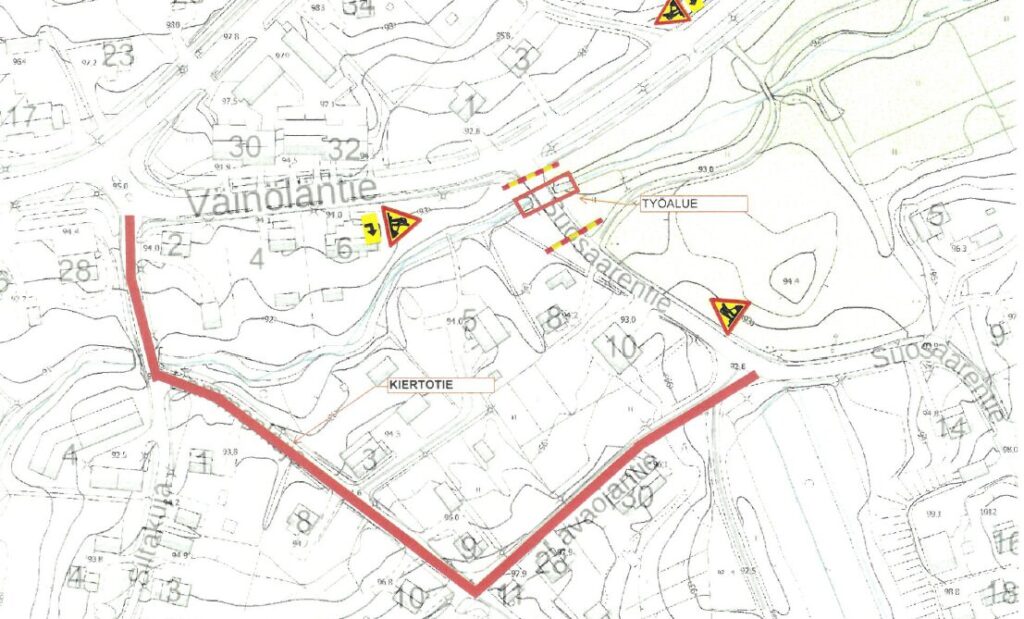Väinöläntien ja Suosaarentien risteys on suljettu liikenteeltä noin kahden viikon ajan (vk 45-46). Työn aikana kiertotie Suosaarentielle on ohjattu kyltein Siltakuja-Lammenkuja-Lavaojantie reittiä.