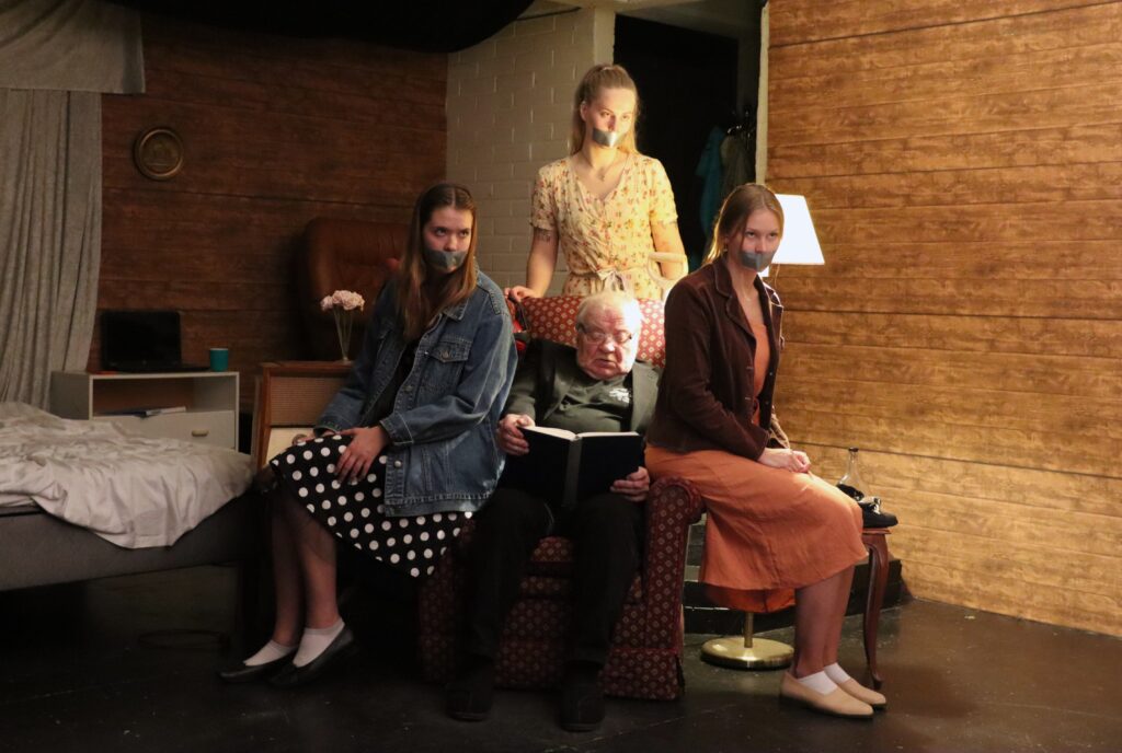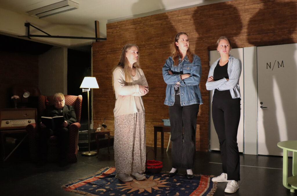 Reijo Himanen, Silja Piirainen ja Saimi Seppänen näyttelevät Mustingan esityksessä 19.10.