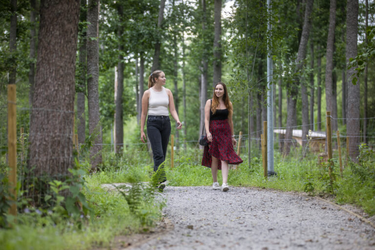 Tervaleppämetsän esteetön reitti kulkee Jämsänjoen rannassa kauniin leppämetsän läpi – 450 metrin pituinen luontopolku, jonka varrella laiduntaa kesälampaita.