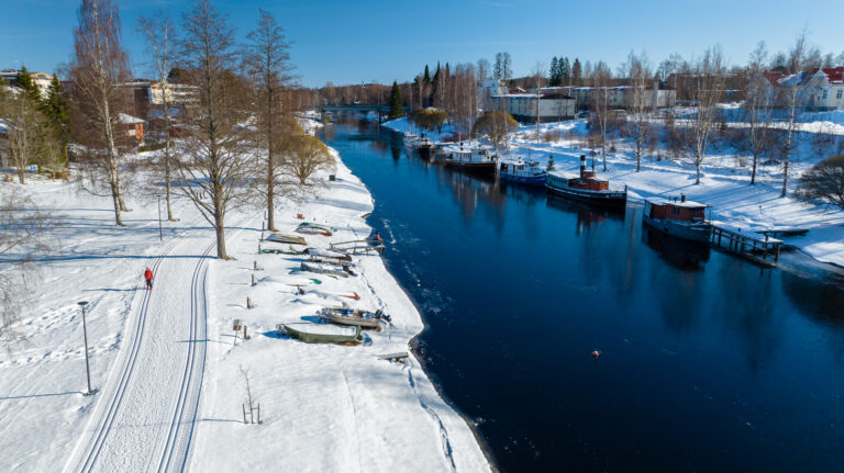 Jämsän keskustassa voi hiihtää joenvartta pitkin. Lisäksi Särkijärveltä lähtee latuja, joista pääset Jämsänkoskelle, Pykälään tai vaikka Himokseen.