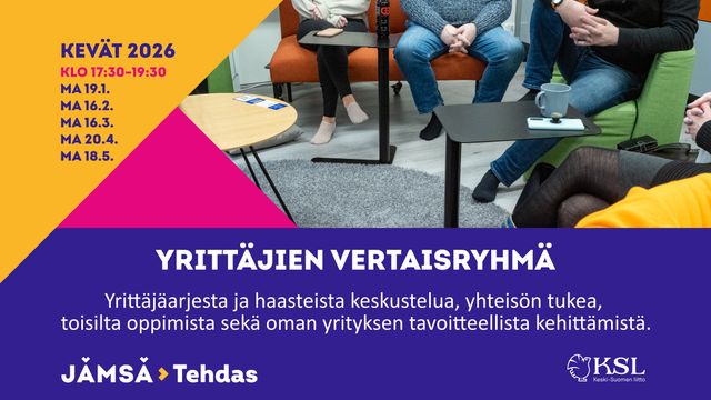 Yrittäjien vertaisryhmässä voit kehittää liiketoimintaasi sekä pallotella ajatuksia ja ideoita yhdessä muiden yrittäjien kanssa.Ryhmä on valittu ja se säilyy samana koko kevätkauden.Mikäli olet kiinnostunut vertaisryhmästä,...