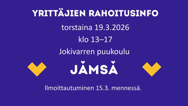 Tervetuloa Yrittäjien rahoitusinfoon! Maksuttomassa tilaisuudessa kerrotaan erilaisista rahoitusmahdollisuuksista niin investointeihin, kehittämiseen kuin asiantuntijapalveluihin liittyen. Jämsän kaupungin yrityspalvelujen...